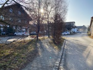 Zusätzlich zu der geplanten Querungshilfe beim neuen Supermarkt wollen wir die Schaffung einer weiteren Querung auf Höhe der ehemaligen Metzgerei Wintermayr. Hier kann durch die Neugestaltung der St2331 im Rahmen der Sanierung und Einführung von Tempo 30 eine sichere Querungshilfe geschaffen werden, die für die Nutzer der Bushaltestelle bei der Apotheke und die von Westen kommenden Radfahrer eine deutliche Verbesserung darstellt. (siehe: Ortsmitte, Dorfzentrum, Tempo 30, Radweg & Hauptstraße – warum das alles zusammenhängt.)